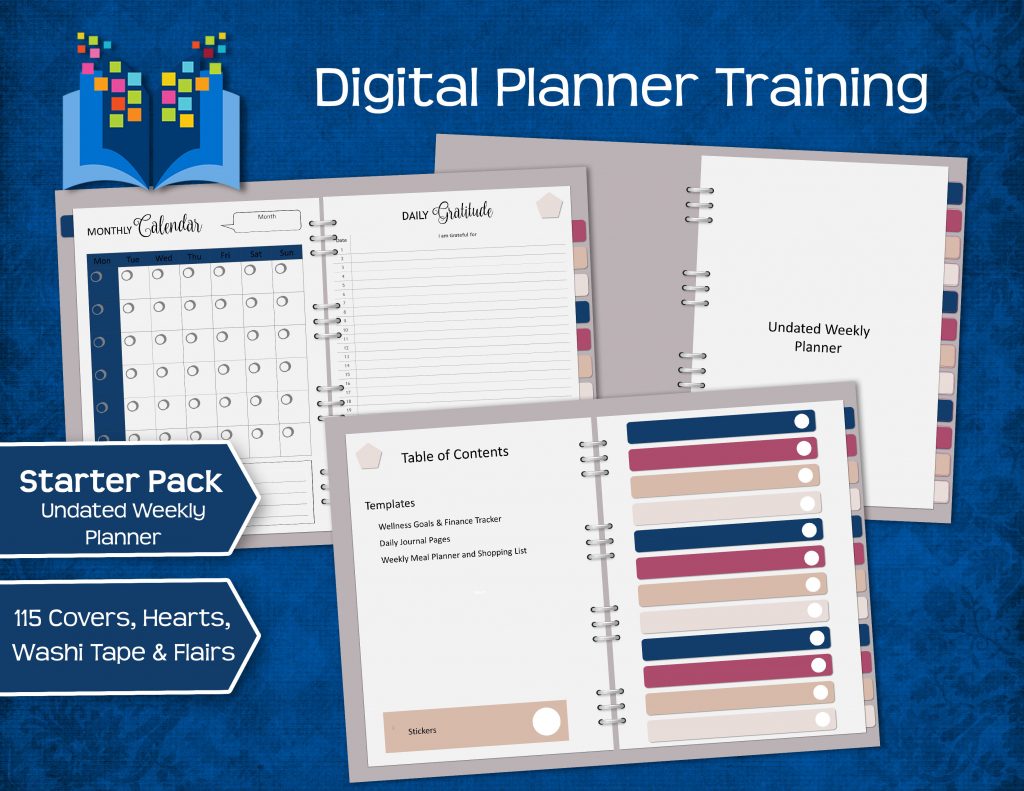We have a small Digital Planner Bonanza – Starter Pack with a commercial use Undated Weekly digital planner and covers, stickers and other graphic resources that you might find useful.