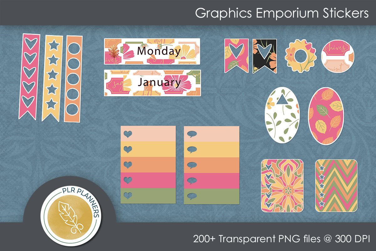 Use the elements to add to the Graphics Emporium – Spring to create more graphics for your planners, journals and printables.